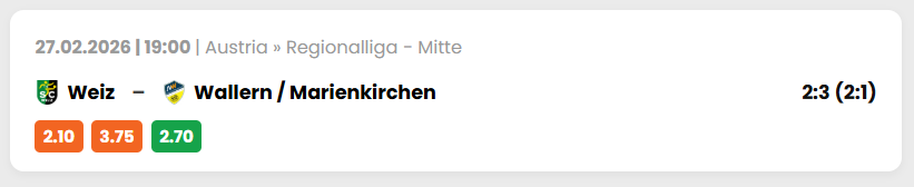 In the Austria Regionalliga Mitte clash between Weiz and Wallern Marienkirchen, the guests celebrated a 2:3 victory after trailing at halftime 2:1. Yes, you read that right. It was a classic 1 to 2 turnaround, exactly the kind of scenario that rewards those who follow the patterns closely.
