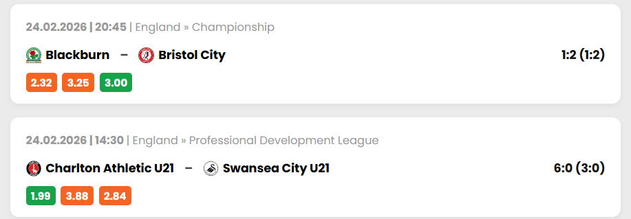 In the Championship clash, Blackburn vs Bristol City ended 1:2 (1:2). The pattern was there, the historical swings were clear, and the system pointed to value. It wasn’t just a random call. It was logic backed by data.