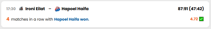 In the Israeli Liga Leumit, Hapoel Haifa once again confirmed their dominance over Ironi Eilat, winning 87:91 (47:42) – their fourth consecutive victory in this matchup!