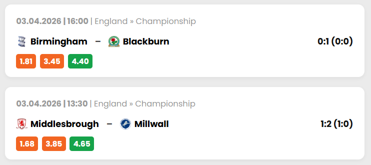Quelle journée pour les amateurs d’analyse H2H. Deux matchs de Championship, parfaitement validés avec le modèle 3 sur 3 et des cotes combinées supérieures à 20.00. Middlesbrough vs Millwall et Birmingham vs Blackburn sont des exemples parfaits de la puissance de cette approche.