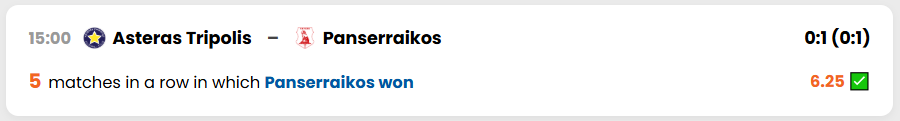 En analysant les statistiques des confrontations directes, une narration convaincante émerge. Panserraikos a constamment surpassé Asteras lors de leurs précédentes rencontres, démontrant un fort avantage tactique et une forme supérieure. Les cotes de 6.25 reflétaient cette performance historique, et pour ceux qui ont placé leurs paris en conséquence, le résultat n’était pas seulement une victoire, mais aussi un témoignage de la puissance de l’analyse prédictive dans le sport.