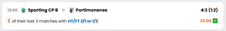 Kada brojke pričaju, mi slušamo. Sporting CP B i Portimonense su već pokazali jasan obrazac. Dva od poslednja tri međusobna meča završena su sa HT FT preokretom 2/1 ili 1/2. Signal je bio tu.
